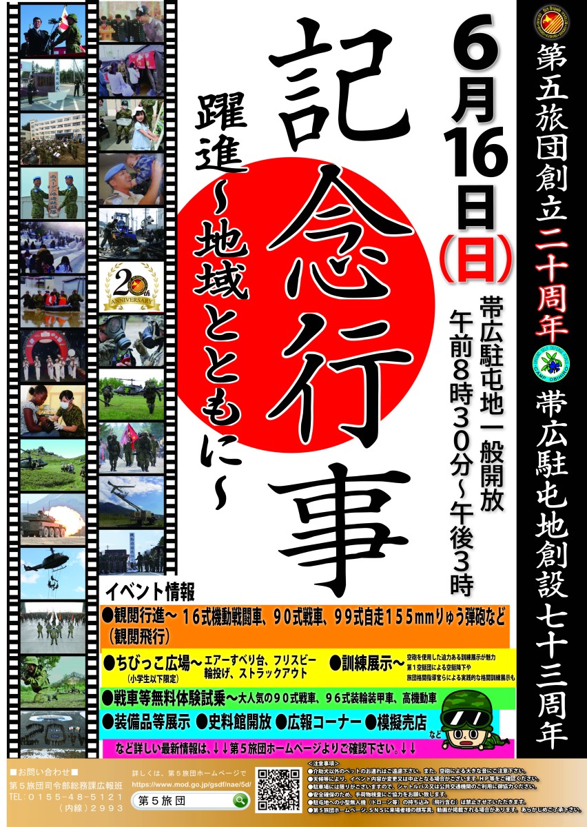 - 【お問合せ】第5旅団司令部総務課広報班(内線)2993 0155-48-5121(代)