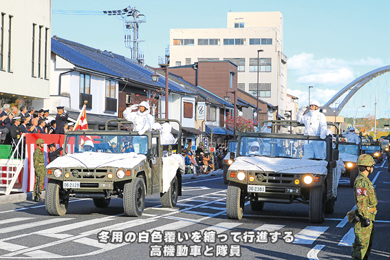 11月29日、京都府福知山市中心部において、「陸上自衛隊福知山駐屯地創立75周年記念行事 市中パレード」が開催された。本パレードは昭和25年の警察予備隊発足時に、仙台から第504施設大隊が移駐してきた際の記念パレードに端を発する。その後も毎年パレードが行われてきたが一時途絶えた時期があった後、市民有志の要望により平成5年に復活した。復活後も、災害派遣や新型コロナウイルスの影響で中止となった年を除き毎年開催されており、歴史と伝統のあるパレードである。ただし令和6年は開催できず、令和7年は2年ぶりの開催となった。