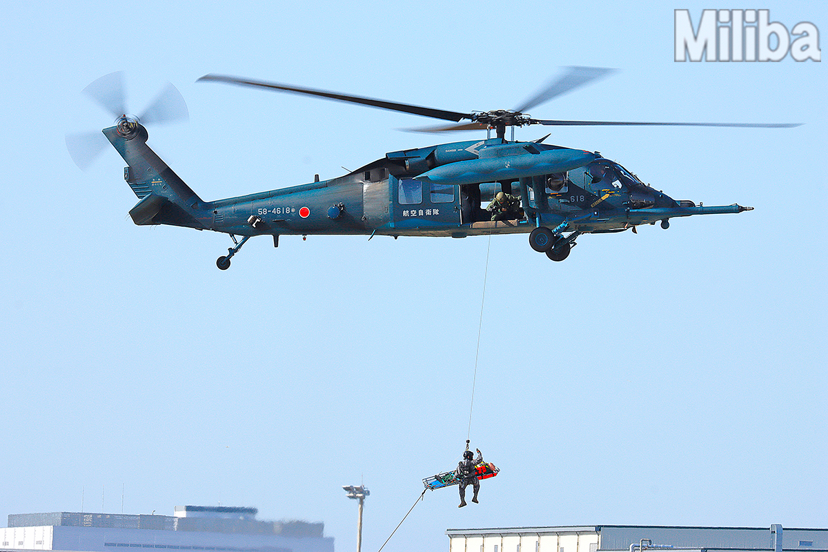―PJが要救助者をUH-60Jへ収容している場面―