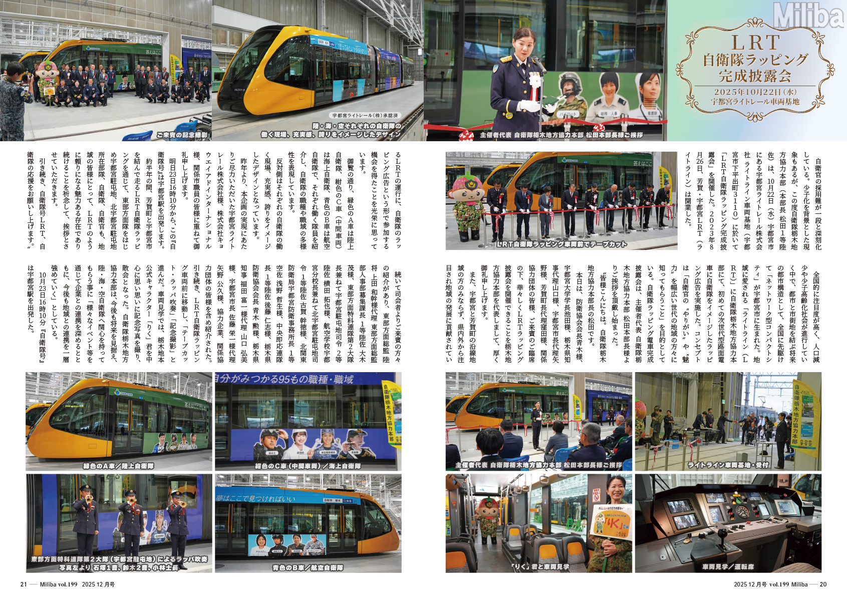 また、宇都宮と芳賀町の沿線地域の方のみならず、県内外から注目され地域の発展に貢献されているLRTの運行に、自衛隊のラッピング広告という形で参加する機会を得たことを光栄に思っています。