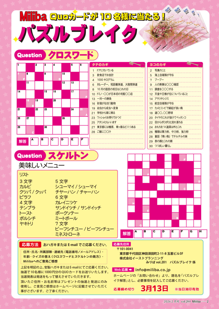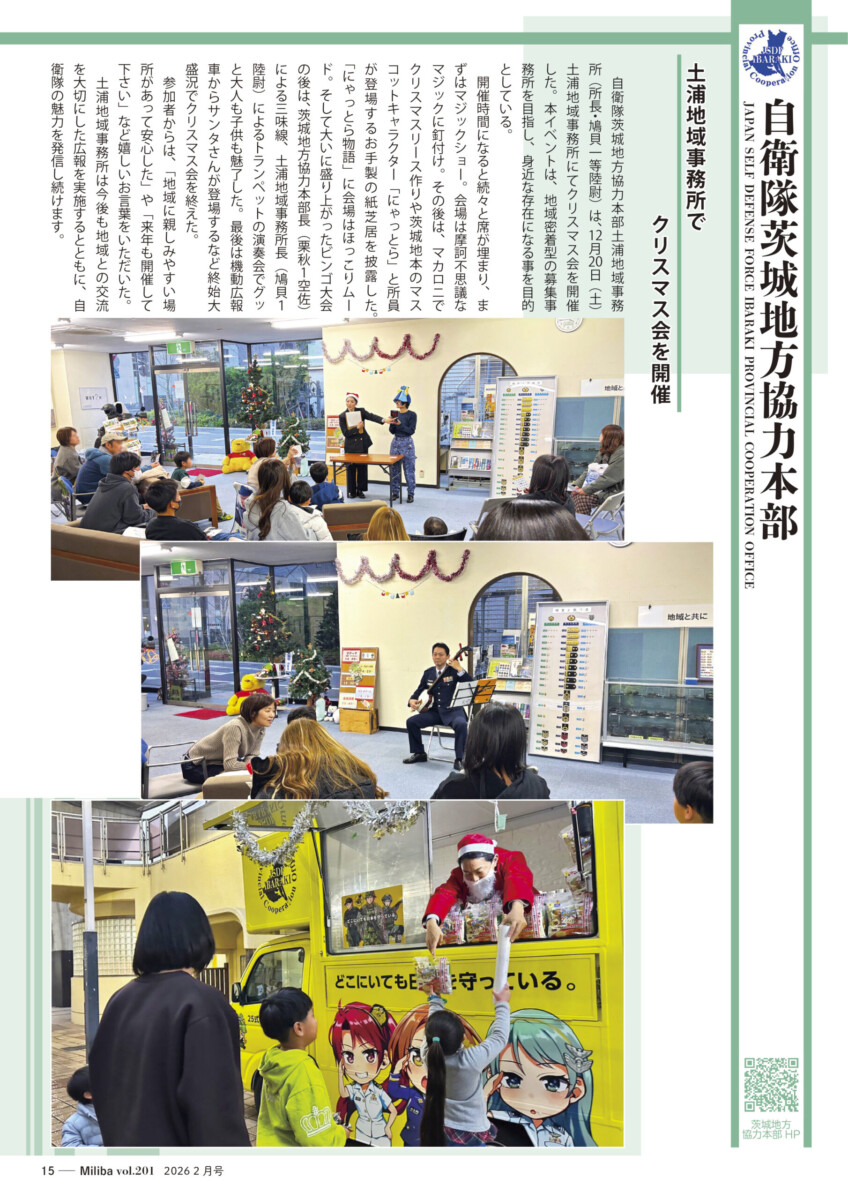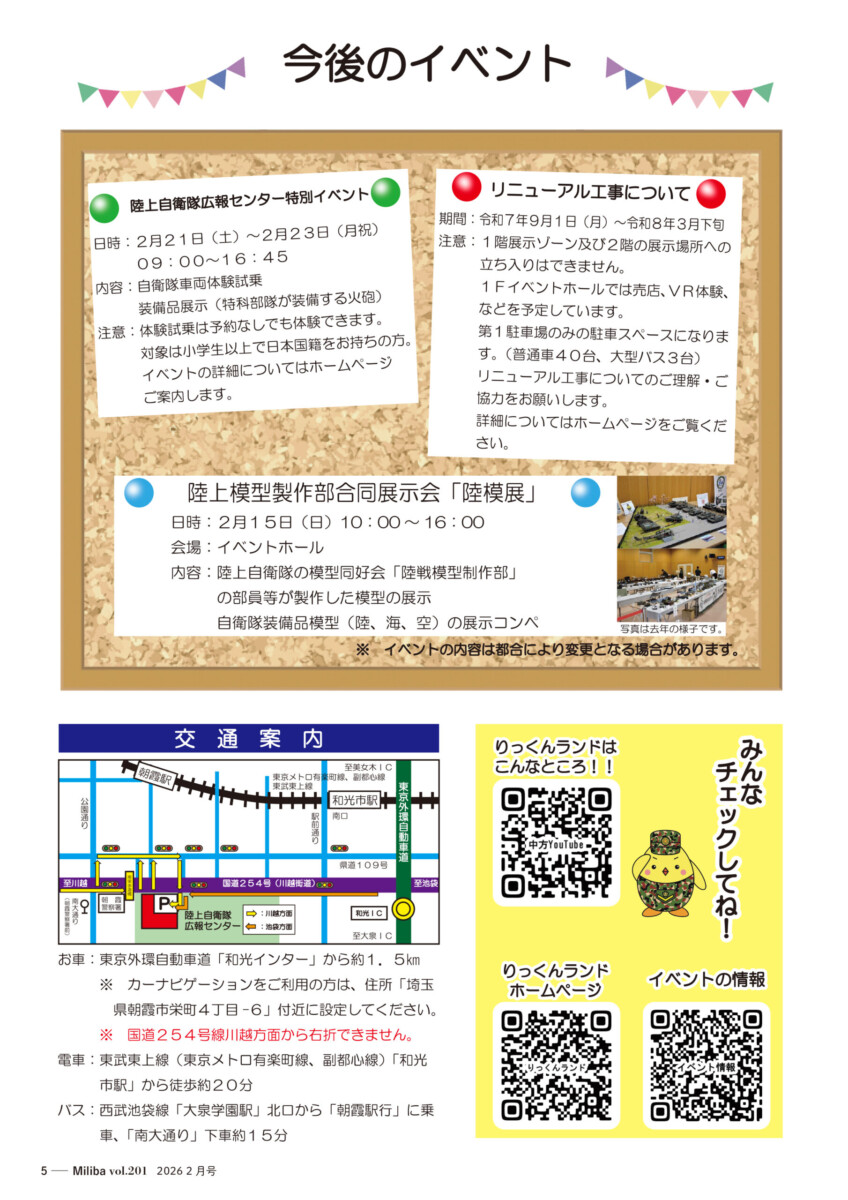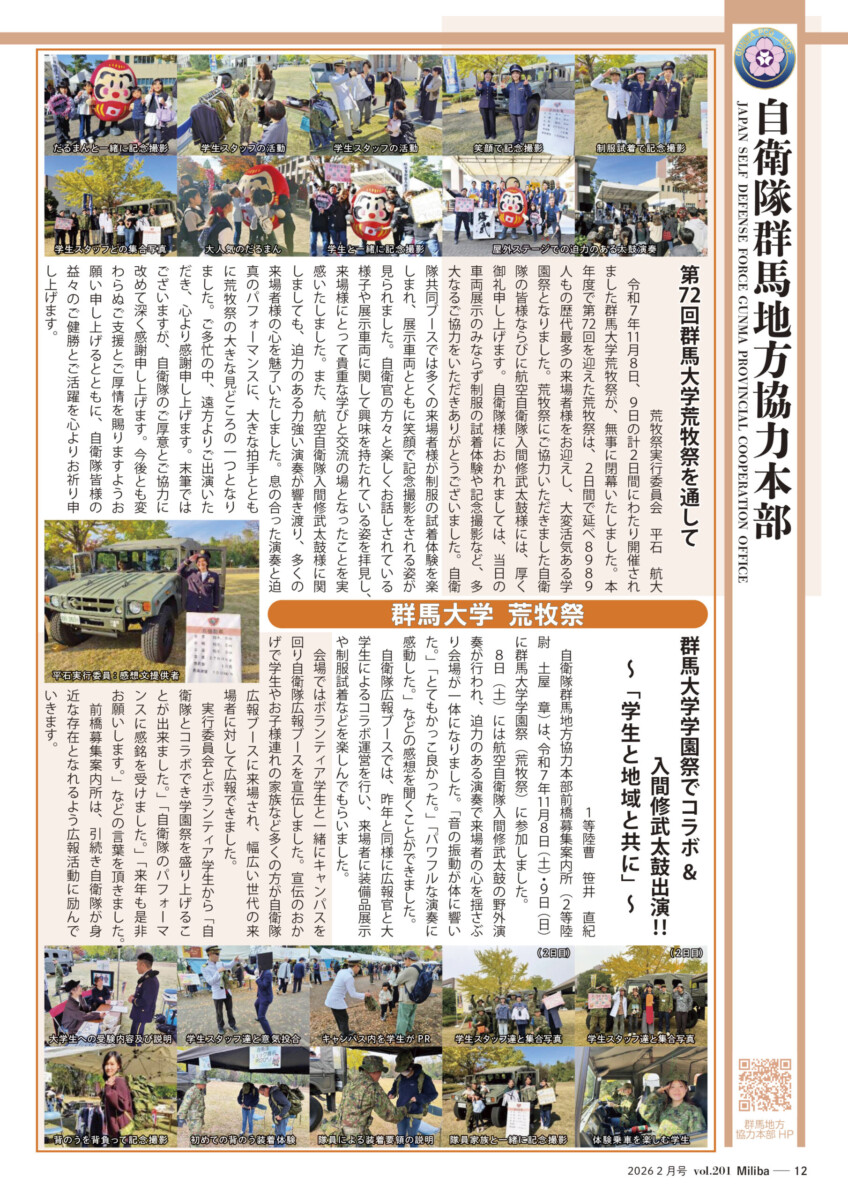 Vol.201(2026年 2月号) 2026/02/10 2026年2月号(令和8年2月号) 自衛隊情報誌Miliba2月号を公開しました❣ 陸上自衛隊広報センター「りっくんランド」はじめ全国各地の自衛隊地方協力本部などにて設置・配布中です。
