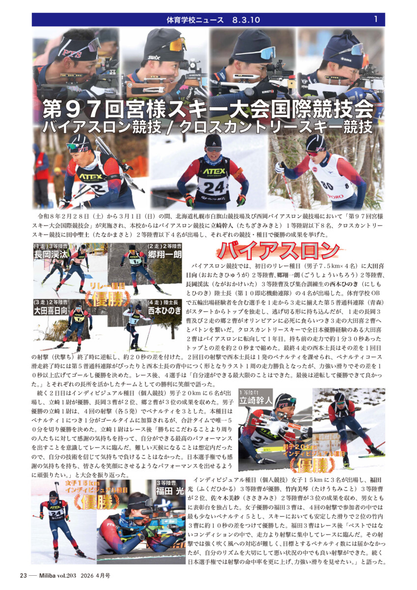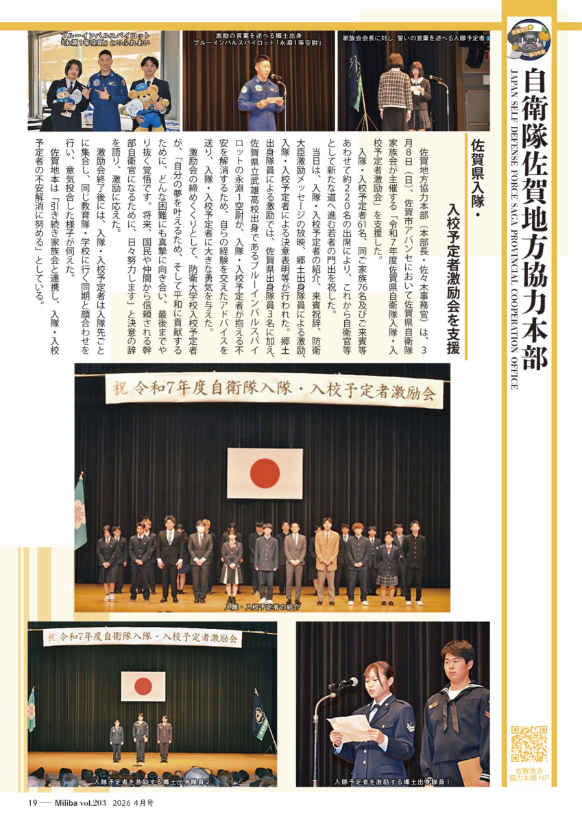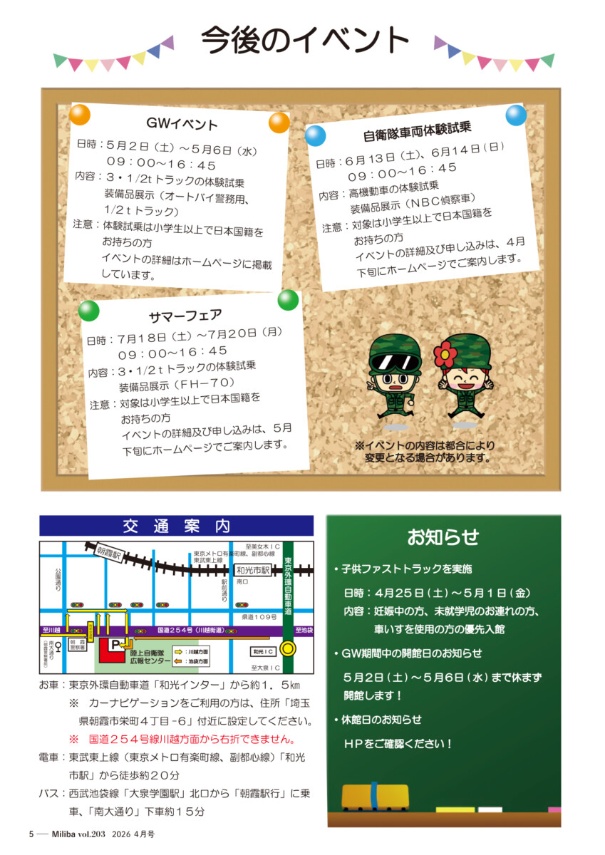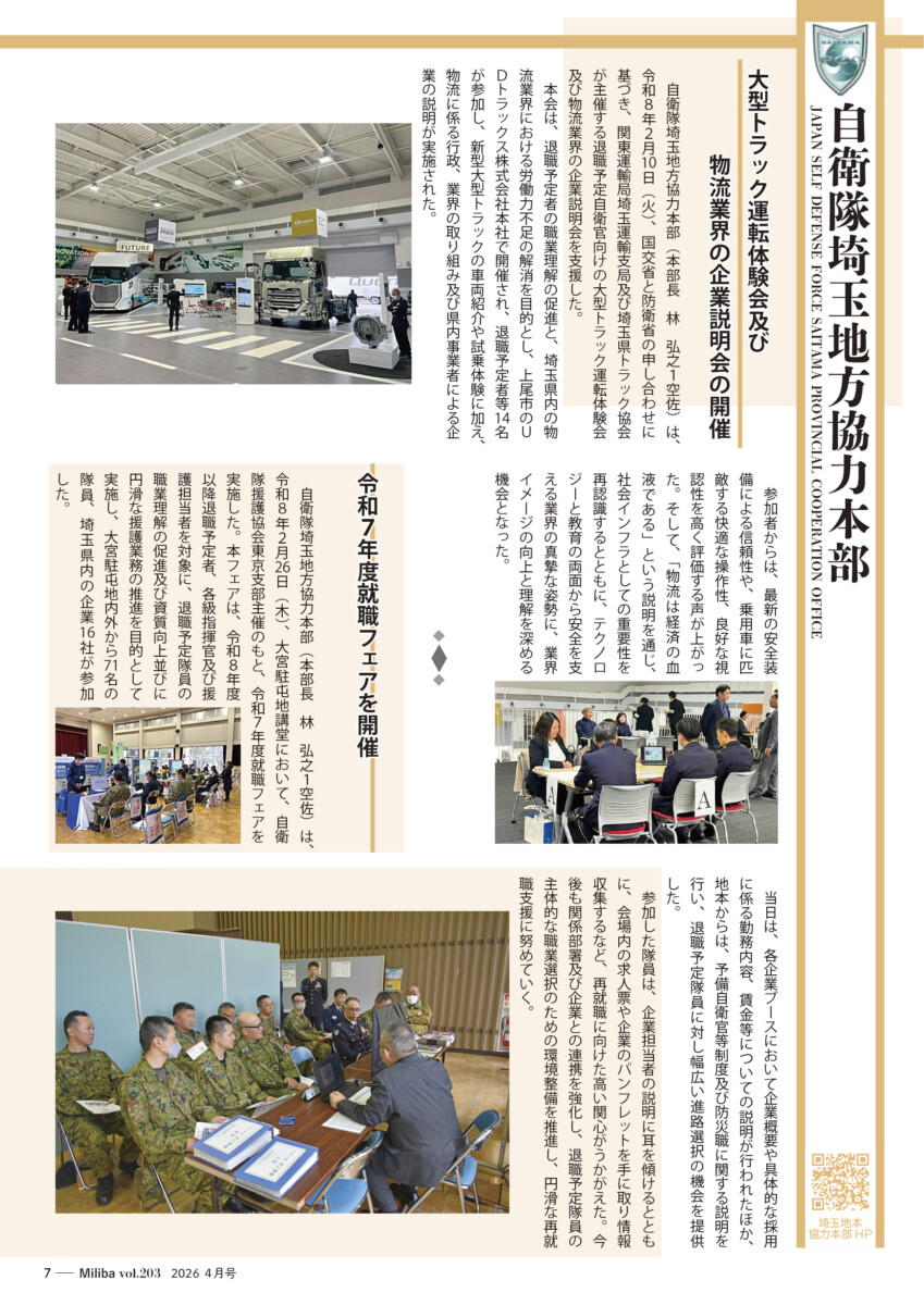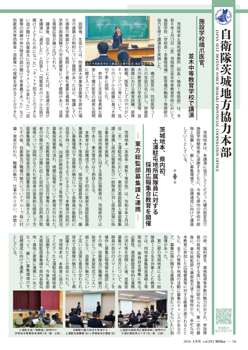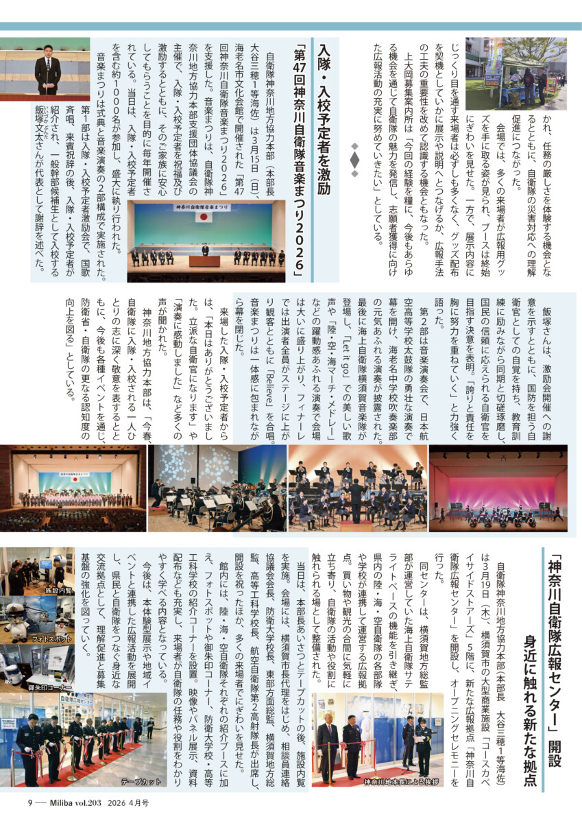 Vol.203(2026年 4月号) 2026/04/10 2026年4月号(令和8年4月号) 自衛隊情報誌Miliba4月号を公開しました❣ 陸上自衛隊広報センター「りっくんランド」はじめ全国各地の自衛隊地方協力本部などにて設置・配布中です。