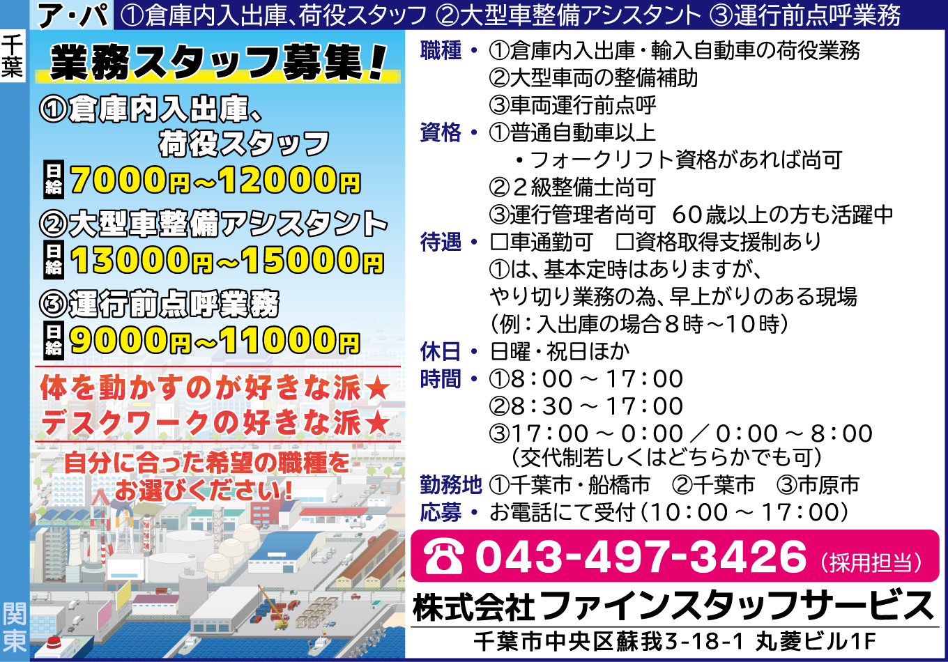 職種/アルバイト ②大型車整備アシスタント日給13000円~15000円