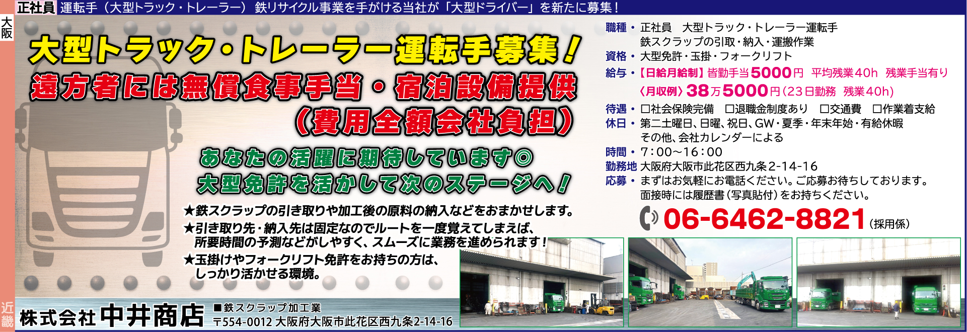 職種/正社員 運転手 鉄スクラップの引取・納入・運搬作業資格/