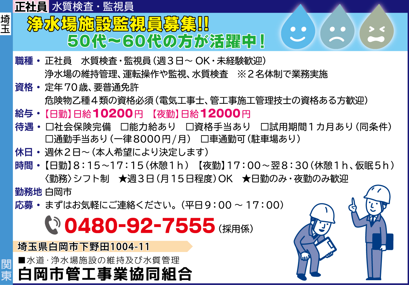 浄水場施設監視員募集!!