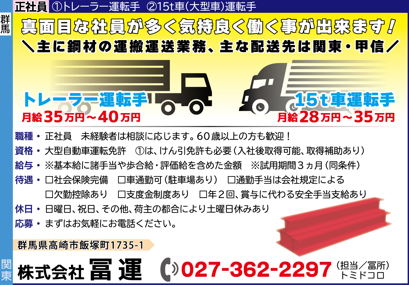 \主に鋼材の運搬運送業務、主な配送先は関東・甲信/