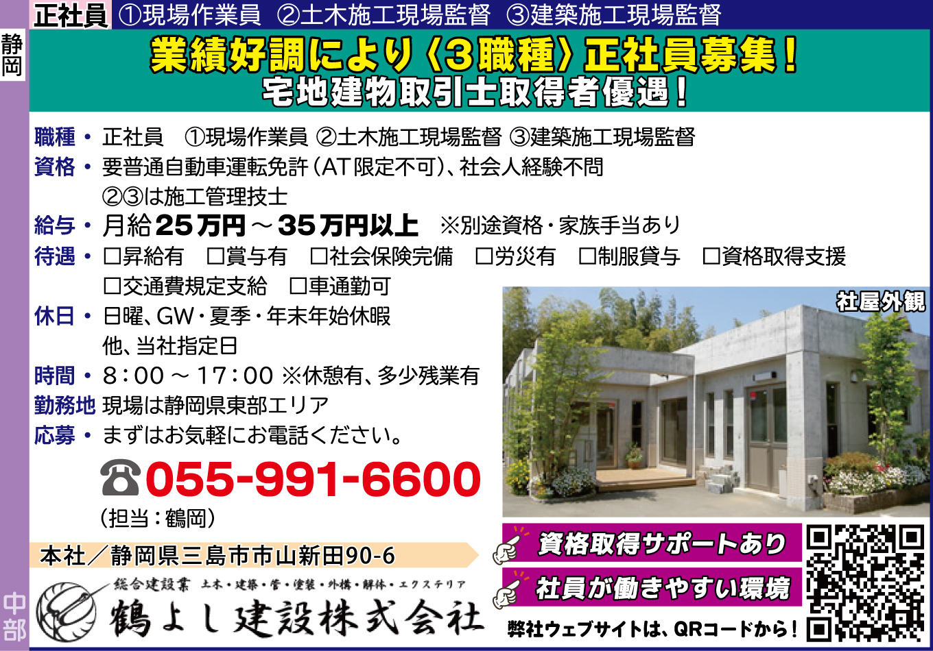 | 応募方法 | まずはお気軽にお電話ください。 055-991-6600 担当:鶴岡 弊社ウェブサイトは、下記URLから! |